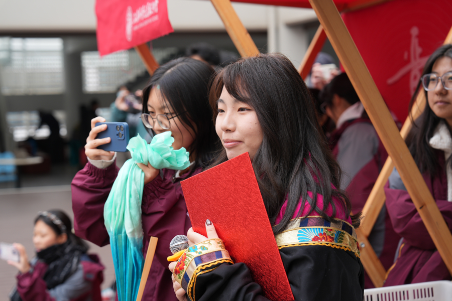“2月17日是农历马年正月月吉,2月18日迎来藏历火马年新年月吉,‘双节同庆’寓意双倍的好意思好与镇定!”高三5班女生贡松旺姆说。