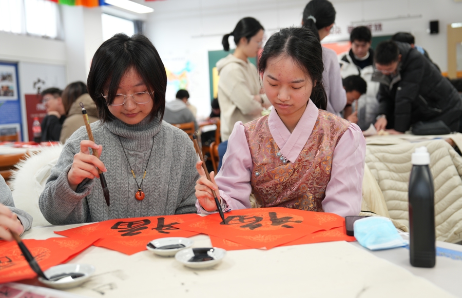 留在校园里,也过出了年味。这几天,同学们收到了零食大礼包、压岁礼和新年祝愿。不少同学的新年愿望是发奋提分,冲刺高考。“上海学生学习很发奋,他们的学习习惯也引发我方不休前行,小伙伴们相互匡助,但愿得益有所进步。”贡松旺姆说。