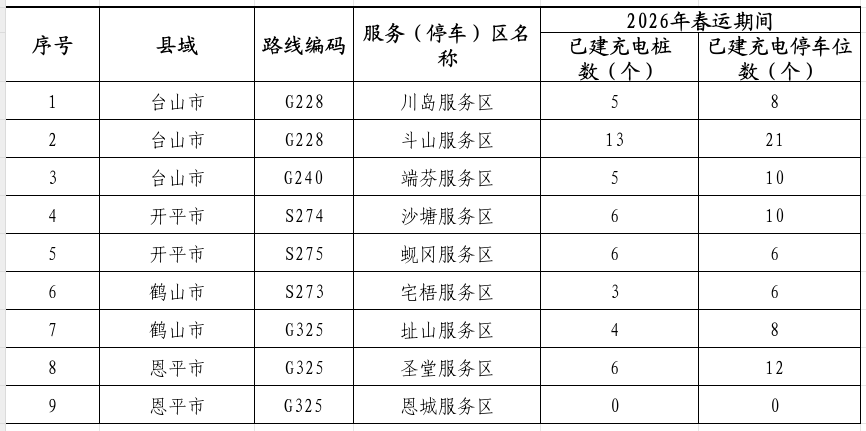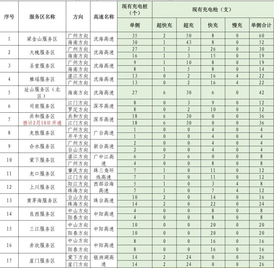 面前,江门市高速公路33个工作区(共和工作区瞻望2月10日通畅)均已竖立充电站,共有充电桩369座,充电泊车位632个,消散率100%。相较于2025年春节前,充电桩数目同比增长约40%,充电车位增长45%,超快充和超充车位增长287%。雄伟市民一又友不错通过“粤充行”“粤通行”等导航平台查询江门市总共高速公路工作区充电站信息。