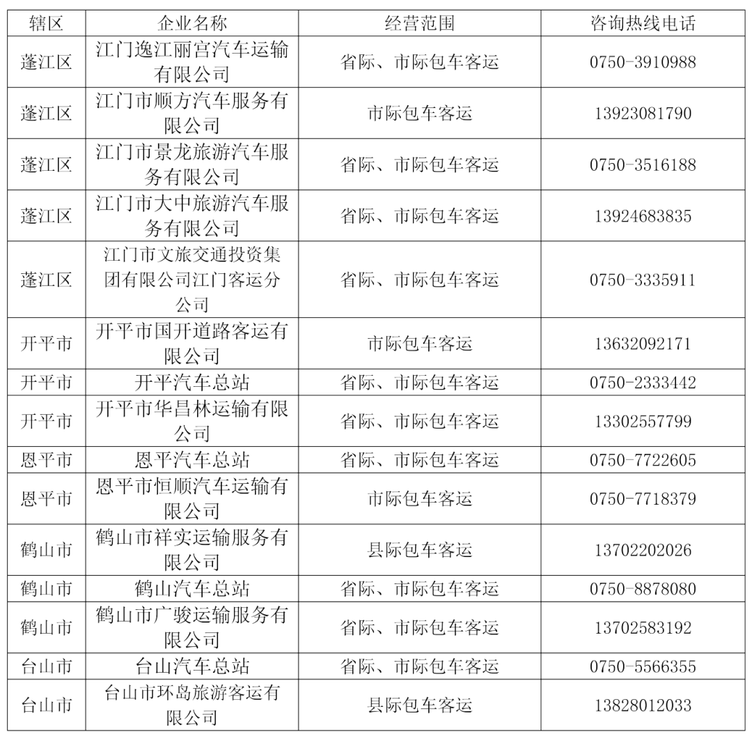 (2)江门市城区汽车客运站,探求热线电话:0750-6788295;