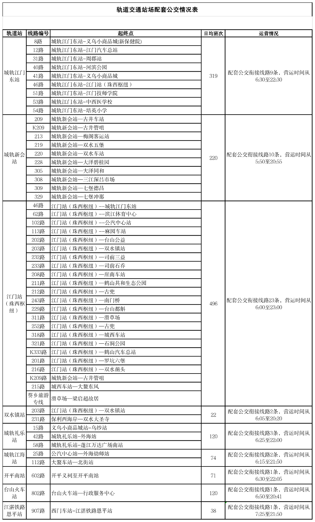 江门站头班车:7:10 尾班车23:00