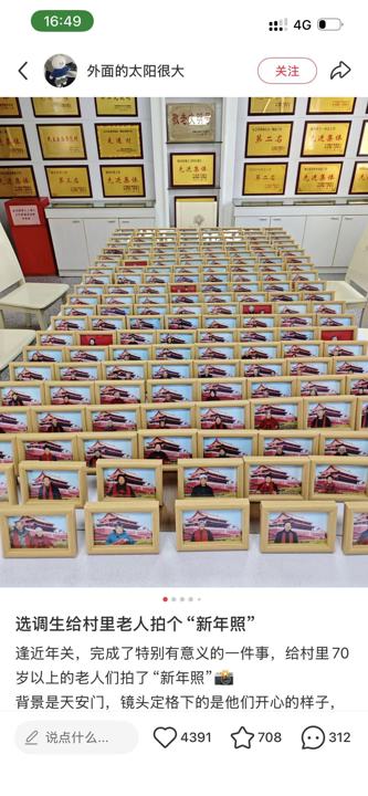 安徽六安舒城县双峰村,选调生张丽平组织给老东说念主拍照的行为。