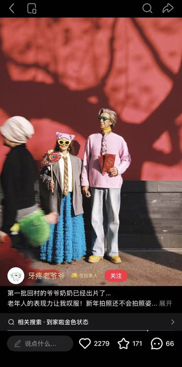 在酬酢平台上,年青东说念主共享着春节给老东说念主拍照的体会。他们用镜头瞄准父老,以致萍水再见的老东说念主,用我方老练的视觉语言、审好意思和行能源,展现老年东说念主的生命力,造成与新一代的情谊邻接。