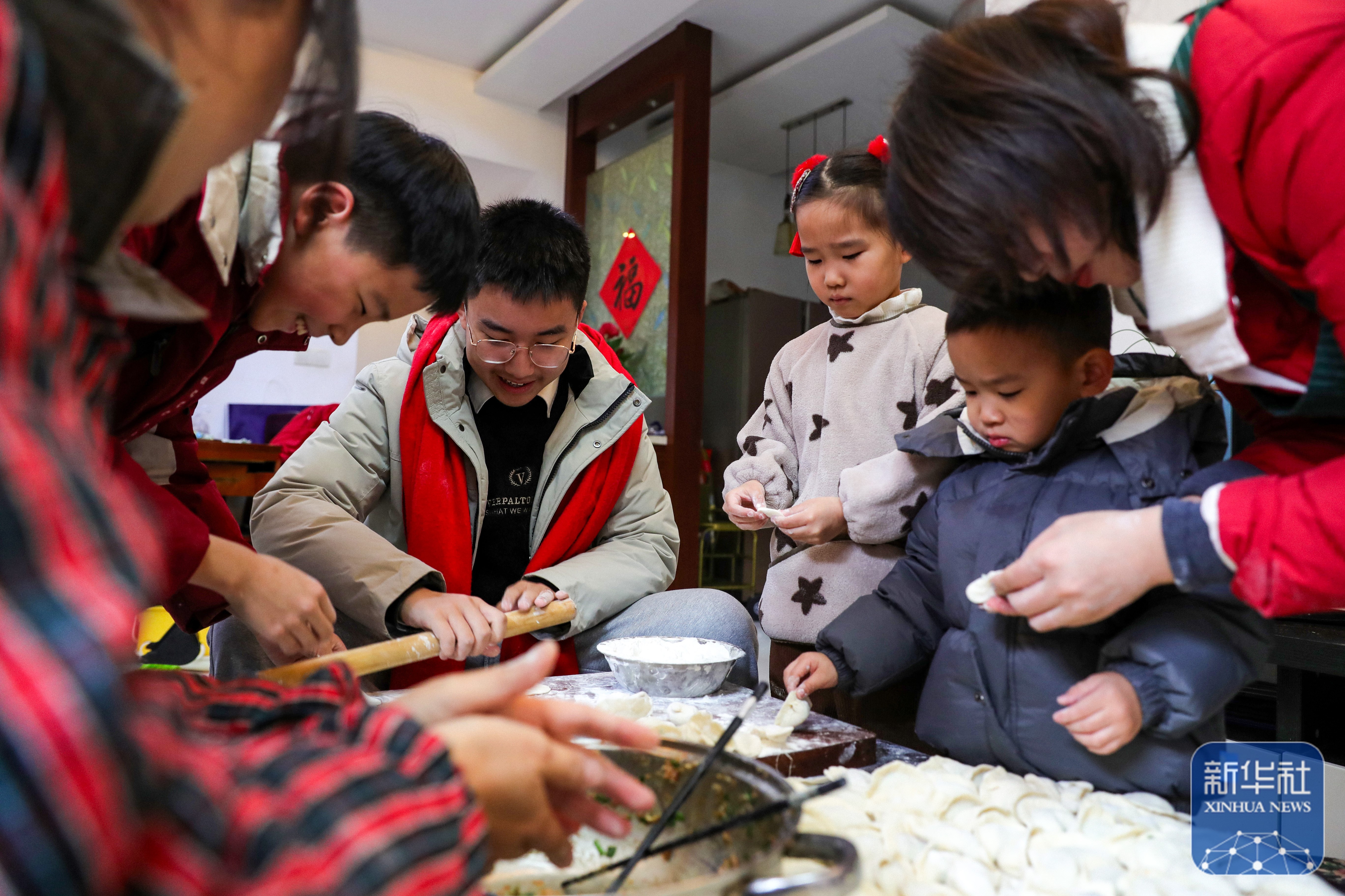 ↑ 2月16日,快乐飞艇在江苏省扬州市邗江区荷叶小区一户东说念主家,大东说念主带着孩子包饺子。新华社发(都立广 摄)